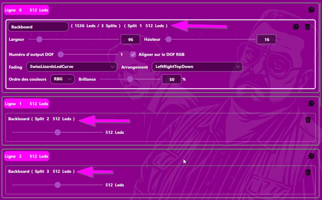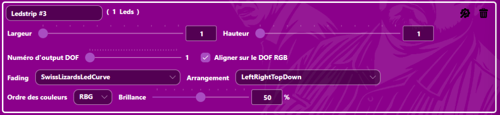 Devant chaque sortie renseignez cla fonction de chaque ledstrip en respectant la numérotation que vous avez renseigné dans Numéro d’output DOF sur le configurateur