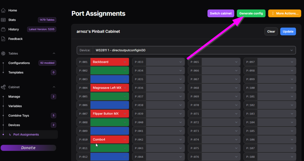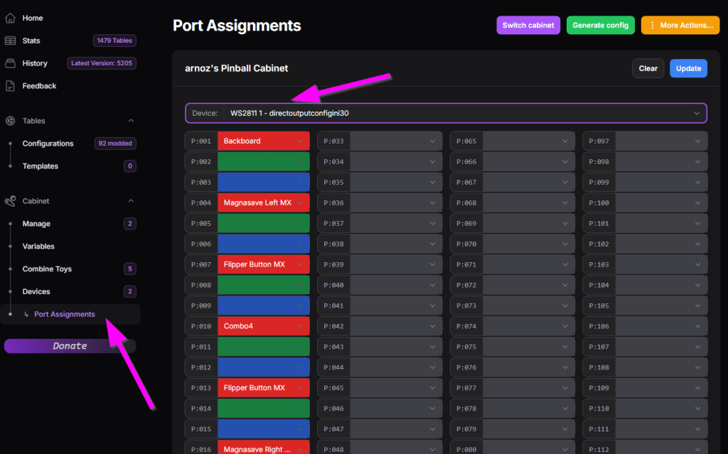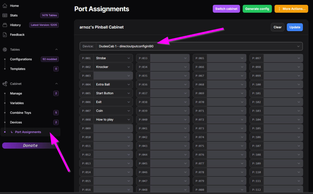 Ensuite cliquez sur l’onglet Port Assignments puis choisissez DudesCab 1 directoutputconfigini90 dans Device pour configurer vos toys classiques.