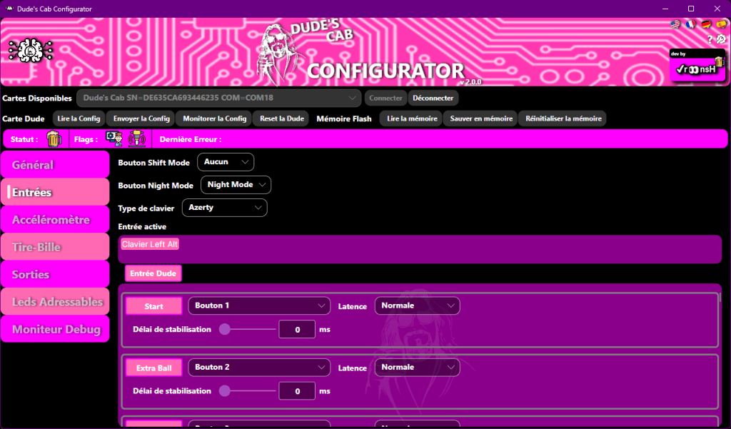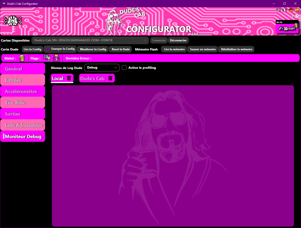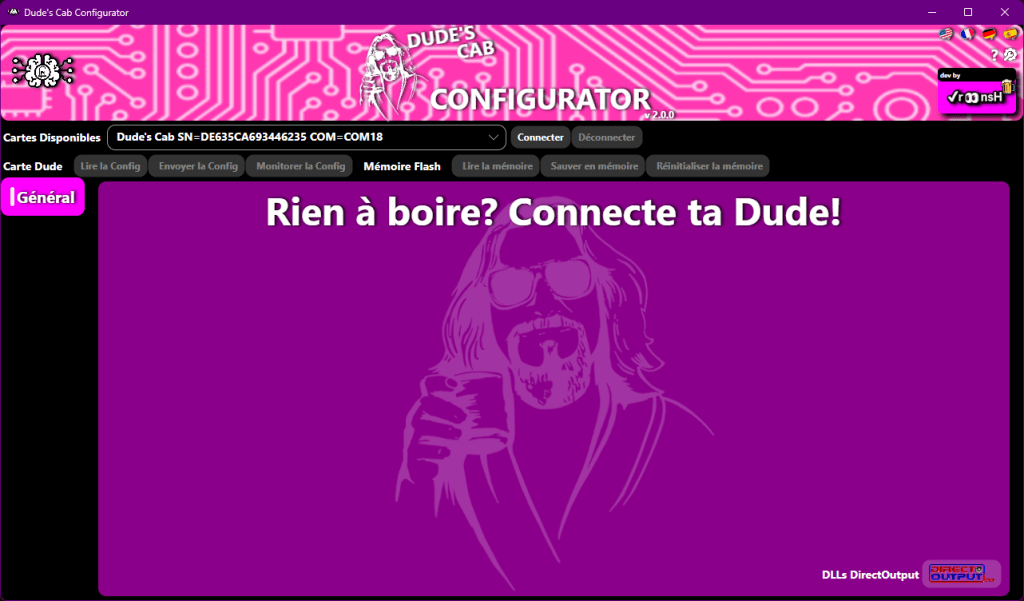 A partir de maintenant, les boutons de Configurator et de Dude Card Flash Memory sont accessibles.