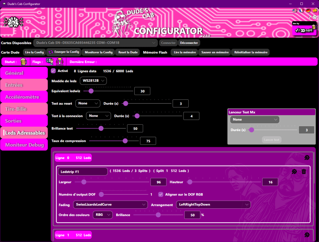 Si vous utilisez une MX DONNY cliquez sur Device afin d’acceder à la page WS2811 – directoutputconfigini30 pour configurer vos leds