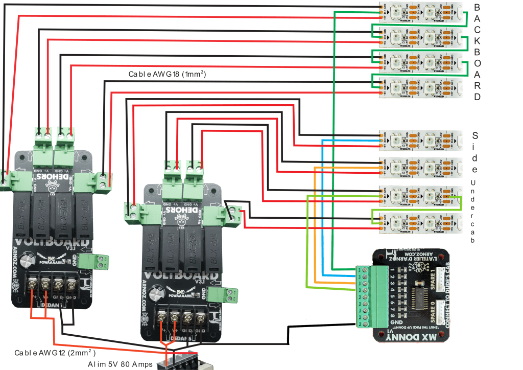 Vous connecterez la prise GND de la MX DONNY au GND de votre alimentation LEDs.